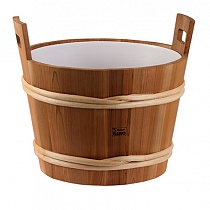 Шайки для бани изготовлены из древесины, с добавлением пластикового или металлического вкладыша. Это необходимо, чтобы конструкция не рассохлась и не разбухла. Место для установки ведра выбирается индивидуально. Это может быть вход в баню или помывочное помещение.