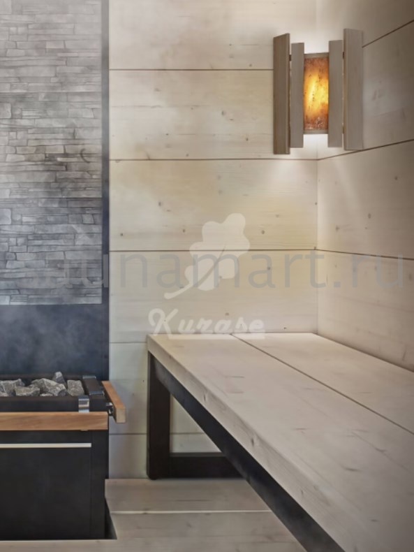 Натуральные материалы, интересный дизайн, приятная фактура древесины и уникальный природный рисунок соли –  сделают абажур главным элементом декора бани, создающим неповторимую атмосферу. Для изготовления абажура используется древесина ольхи премиального качества, а так же декоративная вставка из 100% натуральной гималайской розовой соли, создающая приятный теплый свет.