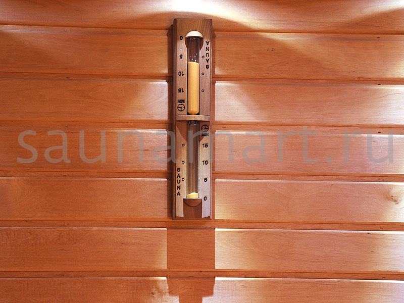 Размер часов 6,5x2,5x34,5 см. Корпус часов выполнен из древесины кедра высочайшего качества и жаропрочного стекла. Прибор не боится высокой влажности и температуры, поэтому идеально подходит для использования внутри парной.