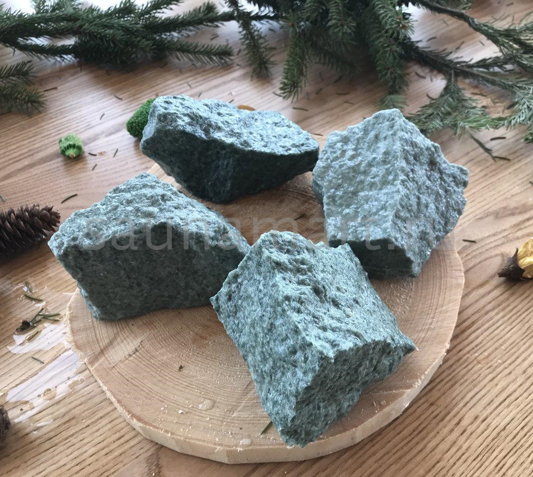 Камень жадеит колотый фракции 80-130 мм — натуральный минерал для банных печей. Упаковка: мешок 10 кг. Происхождение: Хакасия, Россия.