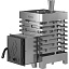 Стальной кожух открытой каменки вмещает в себя до 160 килограммов банного камня.