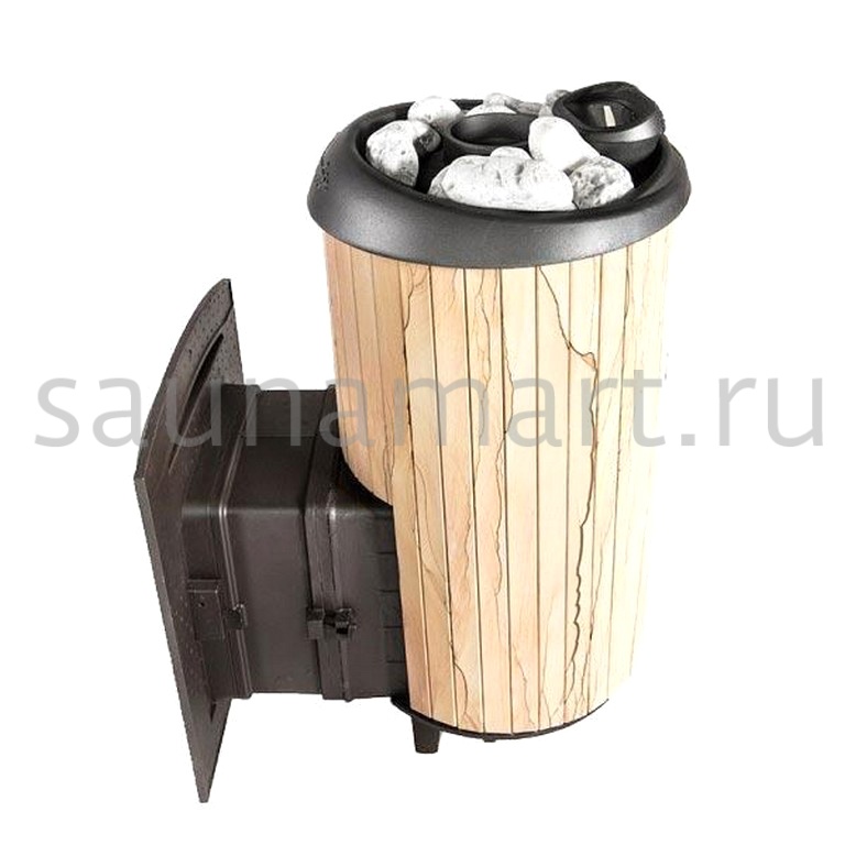 Практичная и компактная модель. Ламели по периметру внешней каменки не только обладают хорошими теплонакопительными свойствами, но и придают печи оригинальный внешний вид.