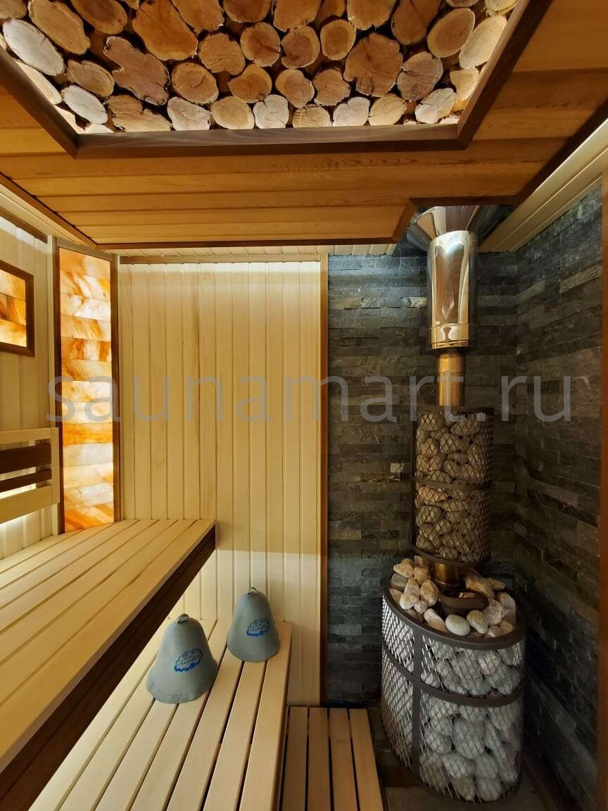 Компактная и экономичная модель. Кожух печи изготовлен в виде сетки из стали и полностью заполняется природными камнями, обеспечивая высокую динамику нагрева парильного помещения.
