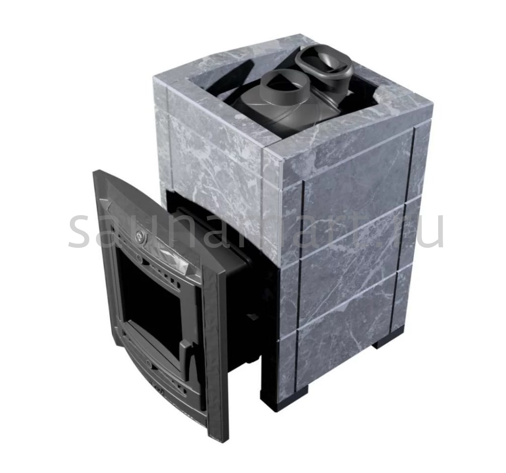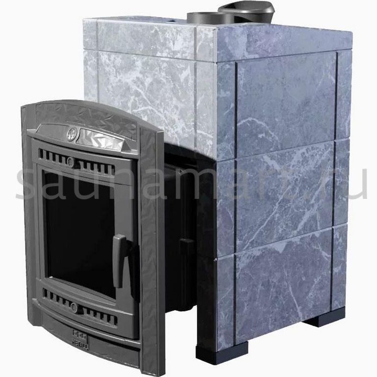 Модель печи в стильной и практичной облицовке из «Талькохлорита». За счет использования несущих брусков, состоящих из цельного камня, теплоёмкость печи увеличивается на 50%. Конструкция просто собирается и позволяет легко заменить любую деталь в случае необходимости. Цена и КПД такой облицовки отличаются оптимальным соотношением.