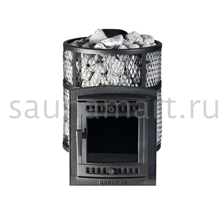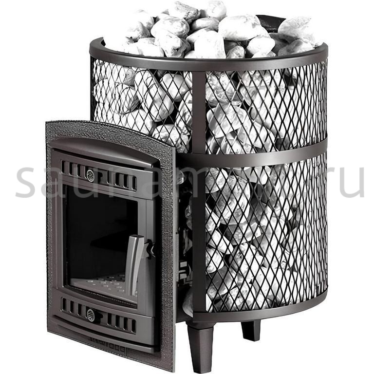 Ультра компактная модель банной печи. Кожух печи изготовлен в виде сетки из нержавеющей стали и полностью заполняется природными камнями, обеспечивая высокую динамику нагрева парильного помещения.
