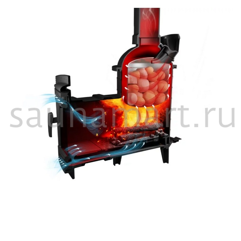 Ультра компактная модель банной печи. Кожух печи изготовлен в виде сетки из нержавеющей стали и полностью заполняется природными камнями, обеспечивая высокую динамику нагрева парильного помещения.