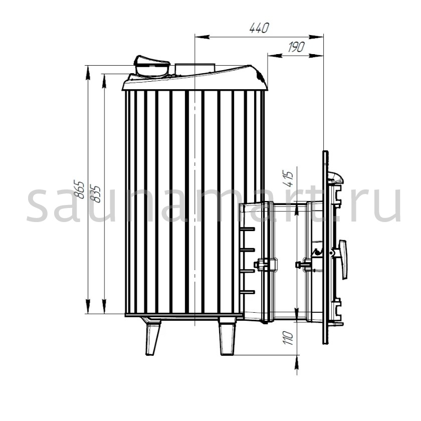Модель с увеличенной каменкой и повышенной производительностью. Ламели, расположенные по периметру внешней каменки, не только обладают отличными теплонакопительными свойствами, но и придают печи оригинальный внешний вид.