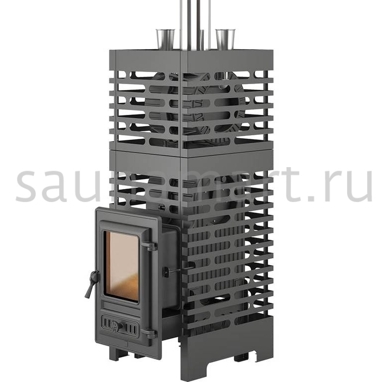 Внешний парообразующий контур представлен сеткой-конвектором, в которую размещается до 120 кг камней для бани. Сетка изготовлена из стали, выполнена в дизайне Астон и окрашена термостойкой краской.