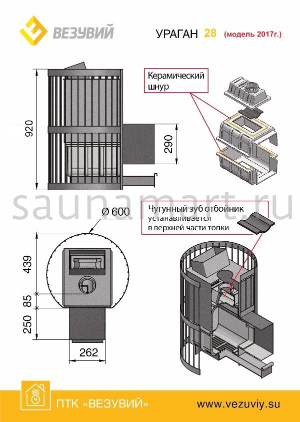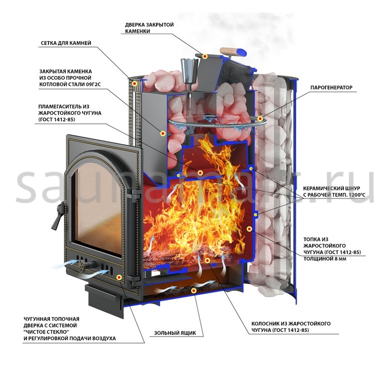 • Материал закрытой каменки: особо прочная котловая сталь (09Г2С)