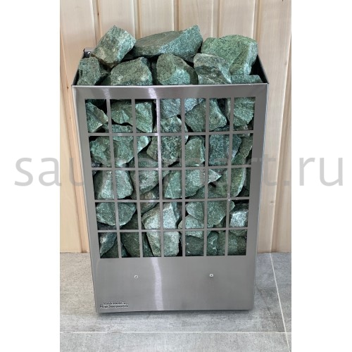 - мощность 7 кВт - работает от 220/380В - настенное/напольное размещение - объем бани 7 - 11 м3 - 3ТЭНа из нержавеющей стали - для регулировки температуры воздуха в парилке от 40-120 градусов (необходим выносной пульт) - масса вмещаемых камней (рекомендованная) 50 - 60 кг (камень Жадеит фракция 4-7 см, в наличии) Материал изготовления ТЭНов (нагревательных элементов) - нержавеющая сталь, средний срок работы тэнов - 10 000 часов, расположенных вертикально по всей камере, обкладываются вокруг камнем и сверху создается "горка" из камней. Материал изготовления корпуса - нержавеющая сталь. ПАРОВАЯ ПУШКА (пароиспаритель) и КАМЕНЬ ЖАДЕИТ приобретается отдельно! К данной модели электрокаменки необходимо докупить выносной пульт управления, который служит для поддержания температуры, т.к. встроенного управления в электропечи нет. Листовой металл. Регулируемые опоры до 20 мм. Настенное или напольное размещение электрокаменки. Открытая конструкция с высокой загрузкой камня (дает возможность согреваться от камня, получая мягкое тепло), НАДЕЖНАЯ КОНСТРУКЦИЯ (хорошая циркуляция воздуха между тэнами и высокая теплоотдача каменки вперед и наверх) и при желании, можно подливать воду (в разумных пределах) на разогретые камни! Высокий объем загрузки камней в нашу каменку 50- 60 кг дает возможность получать больше мягкого и приятного тепла в парилке !!! Гарантия от производителя - 12 месяцев. Производство: Россия, Челябинская область, г. Челябинск Размеры: 39 см (ш) х 22 см (25 см с креплениями) х 60 см (В) Вес: 15 кг