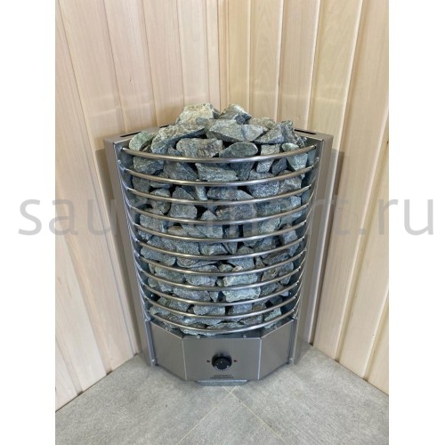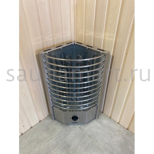 Электрическая печь ЭКМ 4.5 кВт "Угловая Олимпия Плюс" — угловая и пристенная модель с встроенным пультом управления, идеально подходящая для компактных бань. Производится в России (г. Челябинск) и подходит для помещений объемом от 4 до 8 м?.