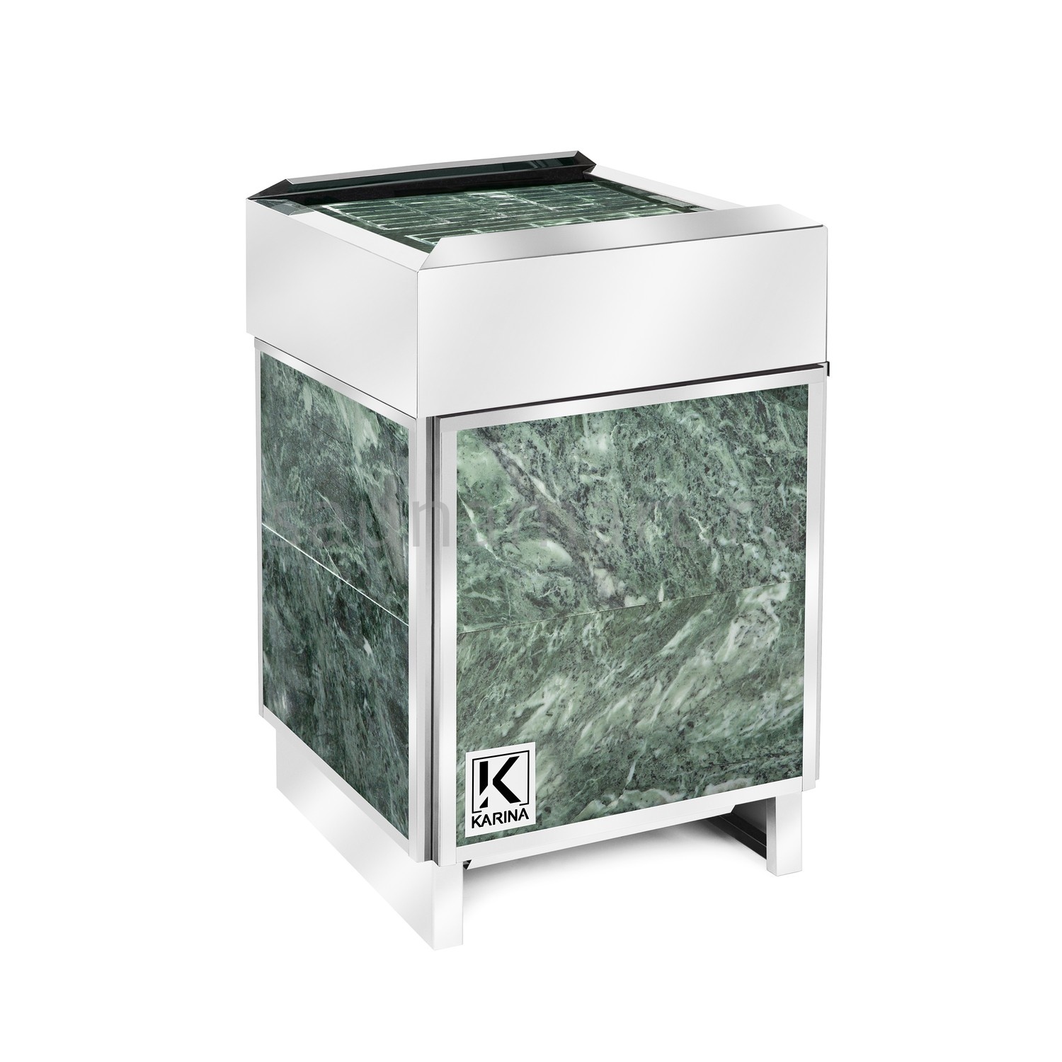 Электрическая печь KARINA Elite 18 Змеевик обладает оригинальным и современным дизайном. Благодаря своему стильному корпусу, она будет замечательно смотреться в интерьере любой бани. Мощность данной электрокаменки составляет 18 кВт, это позволяет ей прогревать помещение объемом до 30 куб. м.