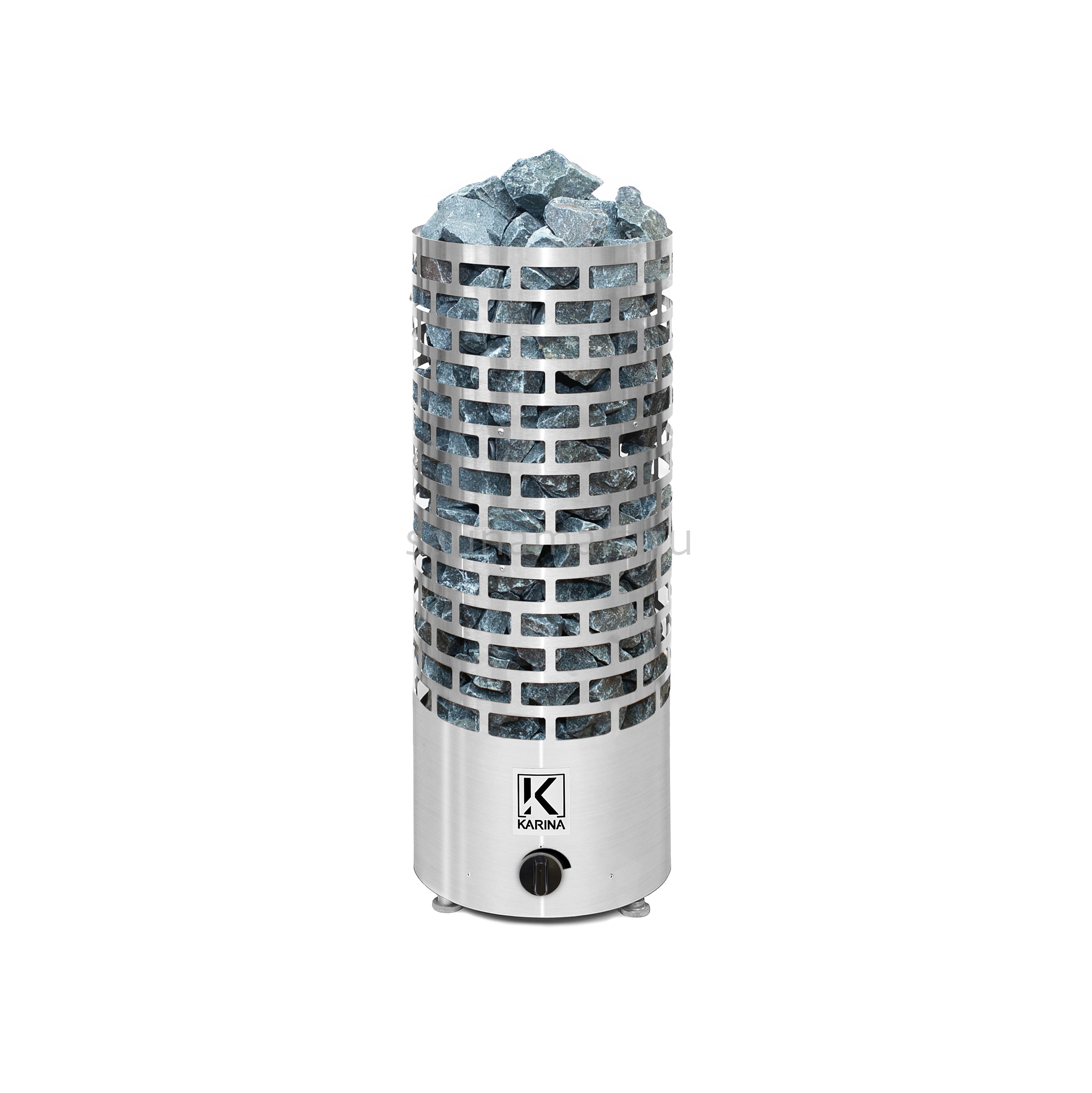 Электрическая печь KARINA Nova 8 No-8-220/380. Электрическая печь Karina Nova 8 No-8-220/380 оборудована пультом управления, который позволяет регулировать температуру нагрева. Прибор работает от сети 220 или 380 В. Корпус и ТЭН изготовлены из нержавеющей стали, стойкой к возникновения коррозии. Преимущества Karina Nova 8: - Обладает оригинальным дизайном и элегантным внешним видом, что позволяет ей вписаться в помещение любой сауны; - Подходит для средних парильных помещений объемом до 12 куб. м.; - Модель имеет отсек для камней объемом до 90 кг; - Электрическая печь подойдет для русской бани – камни снимут жар от раскаленного ТЭНа; - Печь Karina Nova No-8-220/380 не позволят сжечь в сауне кислород; - Важным является момент, что форма цилиндра и облицовка камнем усиливает эффект; - Каменка представлена в напольном исполнении; - Работает от сети с напряжением в 220/380 Вольт; - Управление электропечью осуществляется с помощью выносного пульта; - Пульт позволяет регулировать температуру воздуха в парной и устанавливать время включения и отключения каменки; - Печь подключается через дифференциальный автомат или через УЗО; - Корпус изготовлен из нержавеющей стали; - ТЭН выполнен из нержавеющей стали; - Печь обладает стойкостью к коррозии; - Не боится попадания влаги.