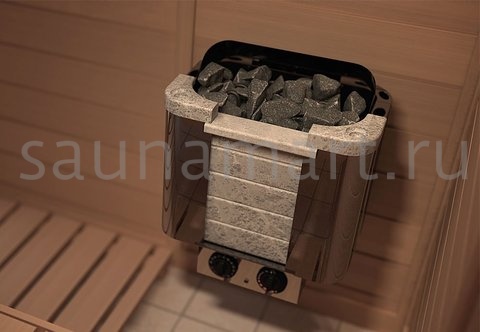 Печь SAWO Cumulus CML-60NB-P – это интересный подход к классической каменке для домашних саун. Печь дополнена элегантной панелью из талькохлорита с передней стороны – это 10 кг дополнительных банных камней, дающих приятное тепло и мягкий пар. Эргономичная, стильная и функциональная электрокаменка. Печь устанавливается навесным способом на стену. Основным материалом для производства финские инженеры избрали устойчивую к коррозии высококачественную нержавеющую сталь. Материал обеспечивает не только длительный срок эксплуатации, но и достойный внешний вид электрокаменки. Особой изюминкой печи CUMULUS CML-60NB является облицовка из талькохлорита фронтальной части печи. Сверху печь имеет 2 арома чаши из натурального камня, что непременно оценят любители ароматерапии. Электрокаменка вмещает в себя до 18 кг камней, которые вместе с талькохлоритной облицовкой массой 10 кг ускоряют прогрев сауны и снижают расход электроэнергии на поддержание нужной температуры воздуха. Подливая на камни воду или отвар из трав, вы быстро наполните парную большим количеством лёгкого мелкодисперсного пара. Управление осуществляется при помощи встроенной в нижнюю часть каменки панели управления.