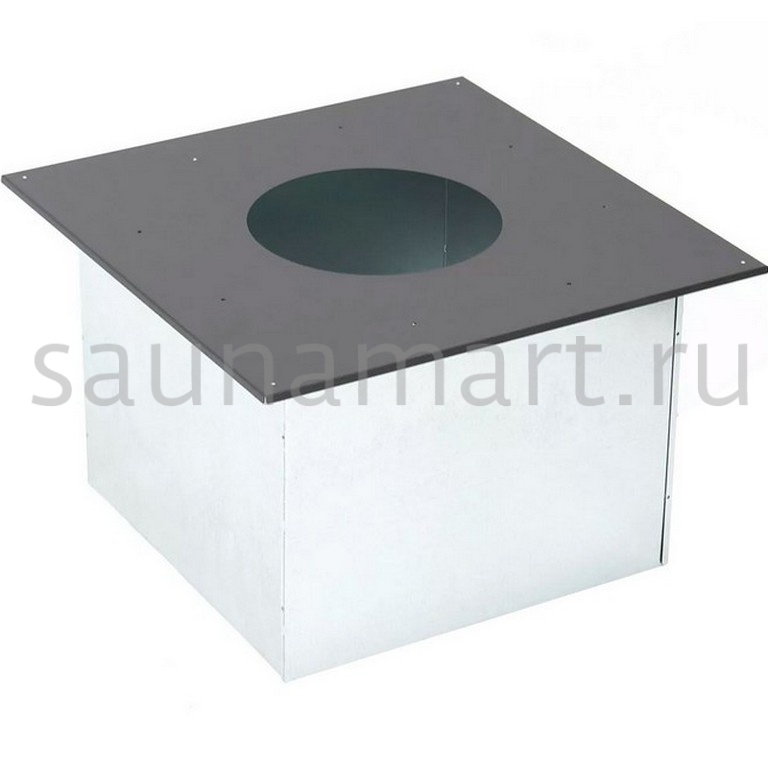 Проход перекрытия универсальный ППУ-Р — декоративно-защитный элемент для оформления узла прохода дымохода через перекрытие. Квадратная конструкция 500?500 мм с отверстием под трубы диаметром 180-210 мм. Изготовлен из стали с термостойким покрытием MC Black (до 200°C). Модификация (У) указывает на универсальность применения.