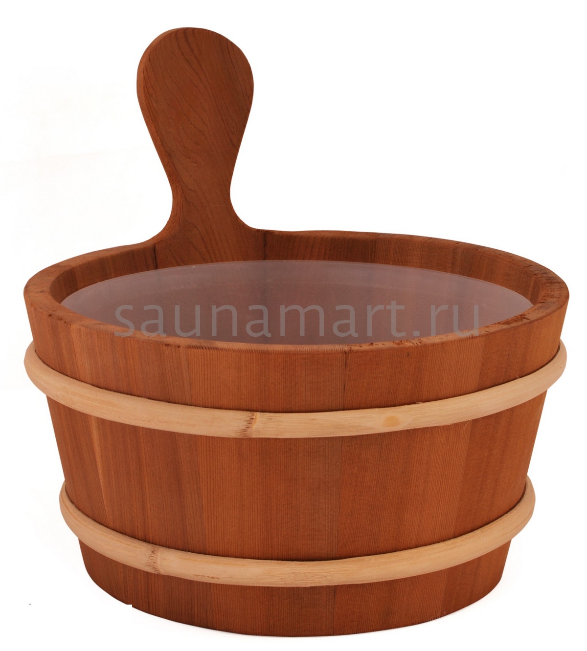 Кадушка сделана из кедра с пластиковыми вставками. Её объём составляет 4 л.
