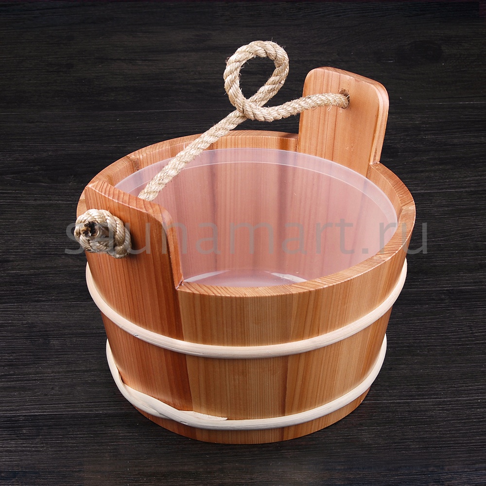 Шайка 4л кедр/ручка канат с пластиковой вставкой Kurase