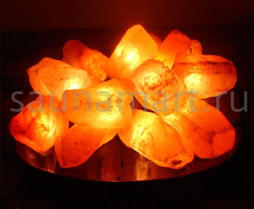 Соляная лампа Огненная ЧАША - из 15 камней на блюде