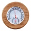Термогигрометр имеет оригинальную круглую форму. В широкой рамке из древесины кедра  находится циферблат, который сообщит о температуре воздуха. Данный прибор прекрасно подойдёт для использования в парной. Максимально допустимая для измерения температура составляет 120 градусов Цельсия. Этого максимума достаточно для комфортных банных процедур. Нагнетание в парном помещении большей температуры нежелательно, так как может быть опасным для здоровья. Благодаря универсальному дизайну термометр станет прекрасным дополнением любого интерьера.