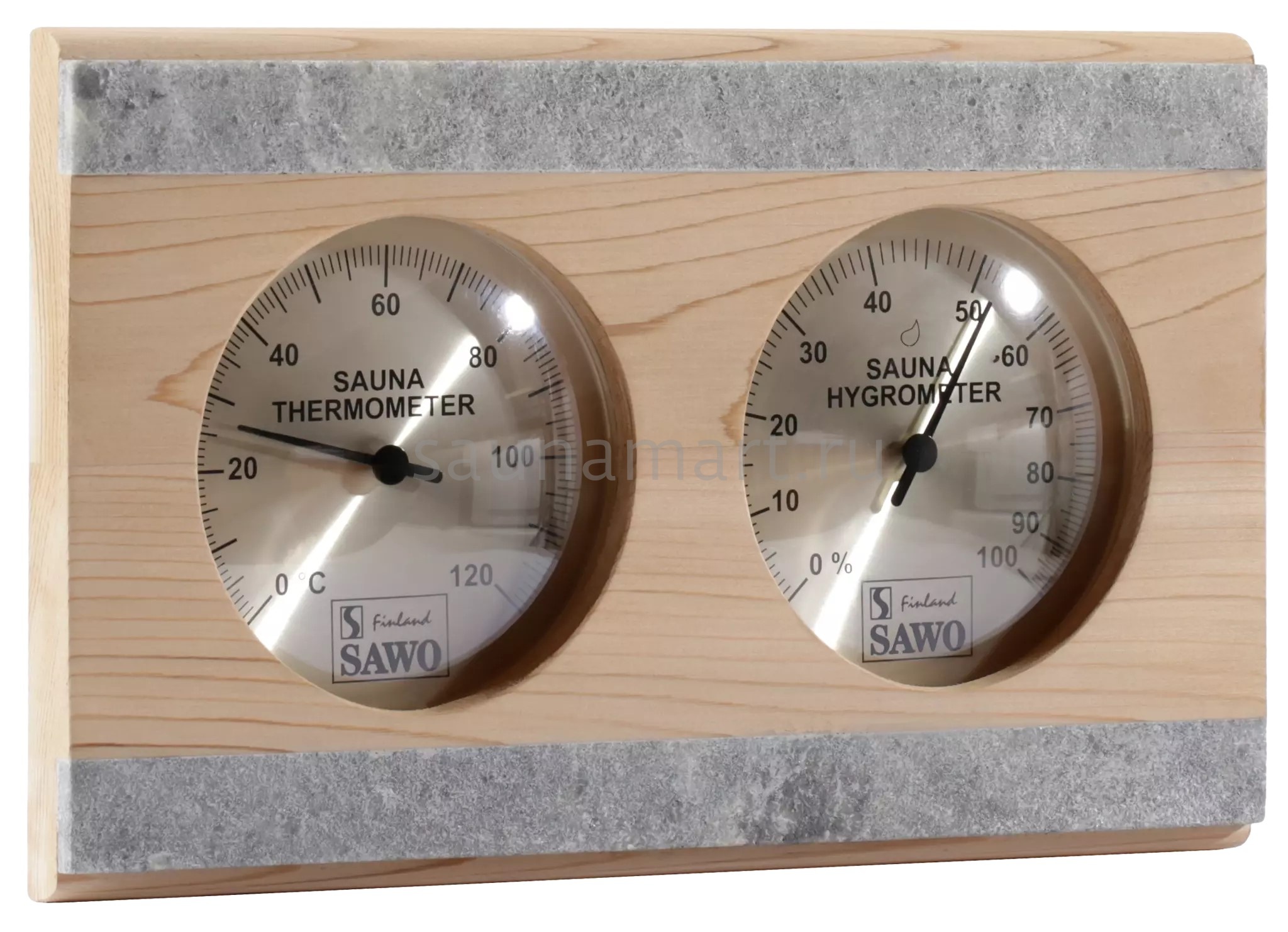 Термометр-гигрометр Sawo 282-THRD изготовлен из канадского кедра и украшен элементами из камня. Данный прибор поможет Вам с точностью измерять температуру и относительную влажность воздуха в парной, а также дополнит её интерьер. Приобретение такого аксессуара станет отличным решением для Вашей сауны!