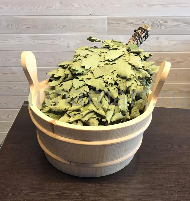 Листья и веточки дуба богаты эфирными маслами и дубильными веществами. Дубовый веник эффектно выглядит, ароматен, а благодаря особой форме резных и широких листьев он способен отлично впитывать пар.