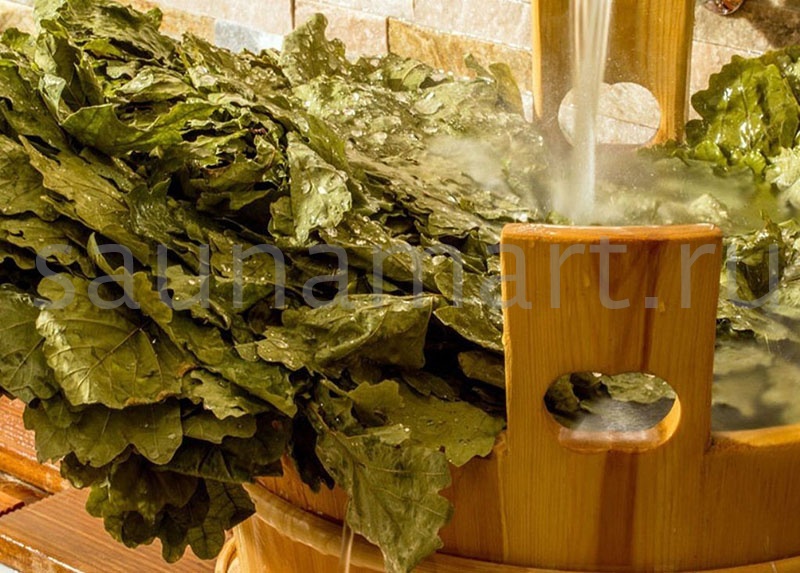 Листья и веточки дуба богаты эфирными маслами и дубильными веществами. Дубовый веник эффектно выглядит, ароматен, а благодаря особой форме резных и широких листьев он способен отлично впитывать пар.