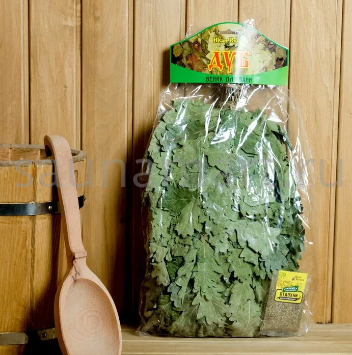Листья и веточки дуба богаты эфирными маслами и дубильными веществами. Дубовый веник эффектно выглядит, ароматен, а благодаря особой форме резных и широких листьев он способен отлично впитывать пар.