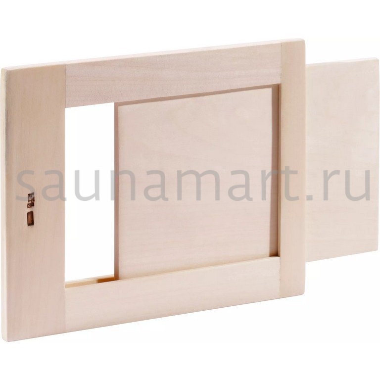 Прямоугольная вентиляционная задвижка из осины для бань и саун. Обеспечивает регулируемую вентиляцию с простым механизмом управления.