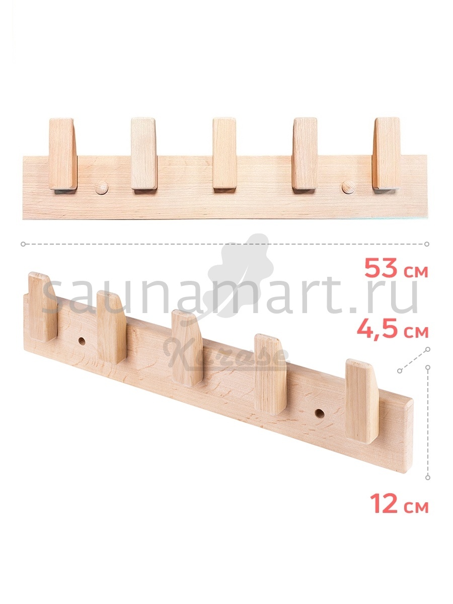 Эко-дизайн, стиль и качество исполнения данного аксессуара не оставят равнодушными ни одного ценителя изделий из древесины. Вешалка выполнена из ценных, благородных пород Кавказского дуба премиального качества и пропитана маслом. Данный аксессуар является универсальным, поскольку может использоваться как в комнате отдыха для хранения халатов, полотенец, шапочек, так и непосредственно в парной, где Вы сможете разместить на нем черпаки, веники, мочалки. Вешалка может использоваться для стилизации ванной комнаты в квартире. Эксклюзивный дизайн данной вешалки Вы можете поддержать другим  аксессуаром-компаньоном –  полкой для полотенец артикул. 19574.  Вешалка имеет 5 крючков и предназначена для крепления на стену. Все элементы крепления закрываются заглушками из дерева. Размер изделия: длина 51 см, высота 12,5 см, толщина 4,5 см.