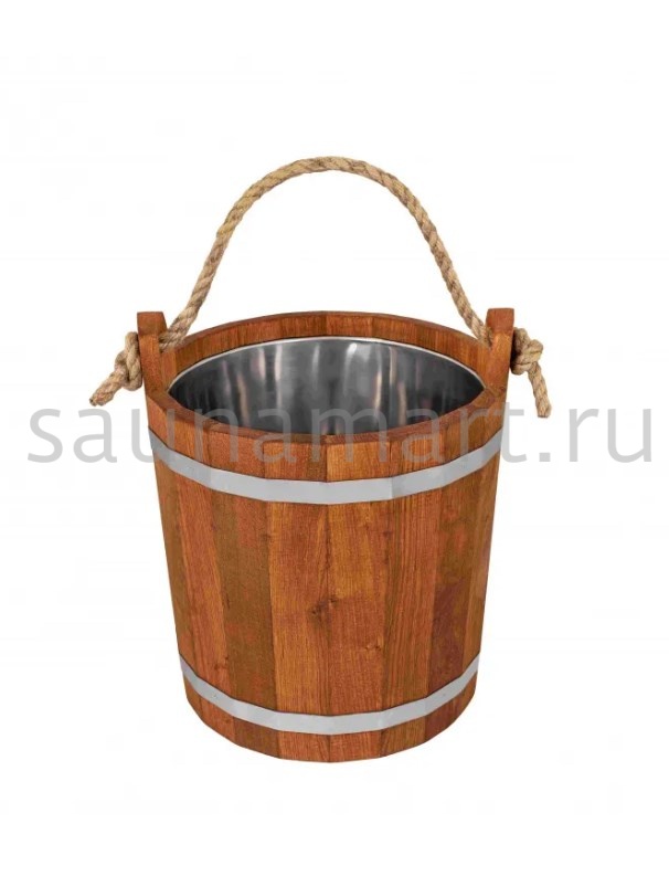 Отлично подходит для хранения и переноски воды, настоя трав, запарки веников. Вставка из пластика обеспечит удобный уход. Ведро оснащено удобной ручкой из толстой бечевы. Наружная часть изделия обрамлена металлическими обручами для надежности конструкции.