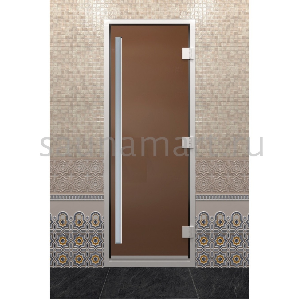 Дверь для сауны 2100х700 Дорвуд Престиж бронза матовая 8мм алюм. коробка ручка комби правая